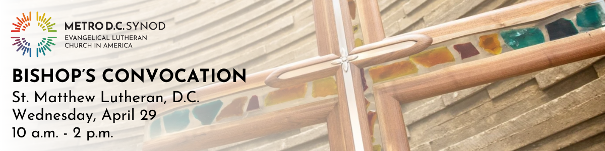 The Bishop's Convocation is an annual gathering of leaders in our synod. We will gather in person 10 a.m. - 2 p.m. Eastern time on Wednesday, April 29.